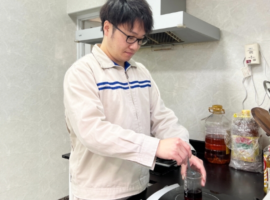 私がこれまで開発を手がけたのは、たとえば大手食品メーカー様の商品のベースになるような調味料や、中国国内の日系、中華系、その他外資系メーカー様で使用されるスープの素など。さまざまな商品の開発に携わっています。入社して最初は研究開発部で粉末飲料の開発、次に調味料の開発を担当しました。お客様からの要望を形にした給茶機用のインスタントティーや野菜の色を綺麗に残した調味料の開発など、日本での経験や知識がその後各国で商品開発を行う時の大事な土台となりました。